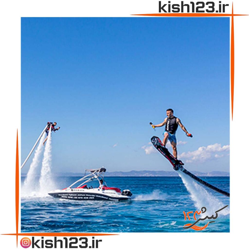 دنبال تفریح دریایی خاص میگردید پیشنهاد ما به شما فلای بورد کیش می باشد. در فلای بورد شما از طریق لوله مخصوص به جت اسکی متصل شده که با پمپاژ آب اوج گرفته و حتی می توانید به آب شیرجه بزنید.فلای بورد محدودیت سنی داشته افراد بالای 18 سال امکان استفاده را خواهند داشت.