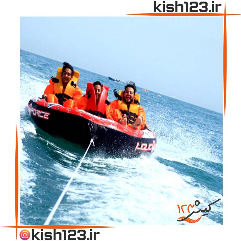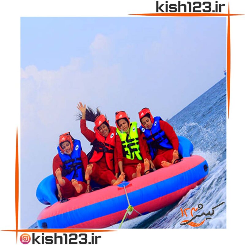 در شاتل کیش شما روی یک تیوپ سوار شده و سپس یک قایق تندرو شما را به حرکت درآورده و شما بر روی موج های دریای به بالا و پایین خواهید پرید.قبل از سوار شدن به تیوپ به شما جلیقه نجات و کلاه ایمنی داده خواهد شد تا ایمنی شماتامین گردد.